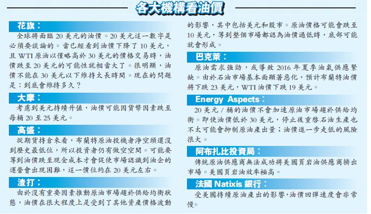 【香港商報綜合報道】開年以來沉重打擊油價的無情拋售繼續上演。當地時間12日,美國石油期貨價格12年來首次跌破30美元/桶,導致更多的裁員以及對油價進一步下跌的擔憂。但隨后美國API原油庫存意外繼續下降以及中國原油進口的大增給油價提供了短線支撐,拉動美國原油期貨價格在亞歐時段遠離30美元水平。然而基本面狀況仍未發生根本性改變,油價未來依然堪憂。
