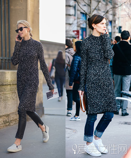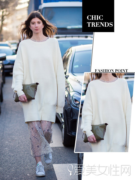 这件长款毛衣真的获得许多街拍达人的喜爱啊,修身设计长至膝盖,不管是搭配皮裤还是卷脚牛仔裤一样显眼有型,穿上无绑带的帆布鞋或是白球鞋增添随性感!