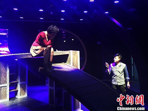 中新网北京1月14日电 13日,话剧《嘿,是我》在鼓楼西剧场首演。在演出前,该剧编剧兼导演祖纪妍接受了中新网(cns2012)记者采访,她用一个数学概念解释了这部剧的剧情,“究竟是谁创造了谁?”是这部剧想要呈现给观者的问题。当谈及该剧独特的立体舞台时,祖纪妍表示,这种设计正是借鉴了电影呈现剧情的方式,让戏剧舞台也有了景深。同时她也表示,该剧的台词十分“筋道”。