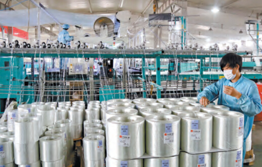 工人在河北宣化縣高新技術產業開發區一特種紡織企業生產線上工作。新華社