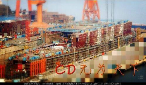图为中国国产航母正在搭建机库,排水量超过5万吨。