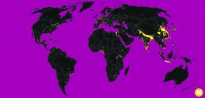 日前,一家美国房地产数据业务公司负责人马克斯·加尔卡使用美国宇航局数据制作了地球人口分布地图,发现全球近一半人口分布在较广阔的地区,而另一半人口则密集生活在城市,仅占全球陆地的百分之一。