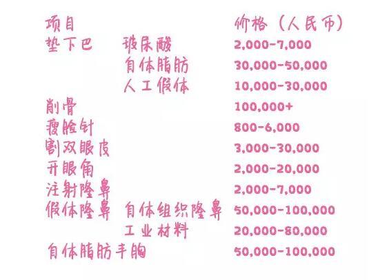 下巴尖到可以存饭。 看看这一张张整容脸,现在想当个丫鬟都那么不容易了吗?既然世界已经变成这样了,多说无益,还是直接开扒。 HOW² 拥有网红脸? 网红step1:锥子小脸 垫下巴:垫下巴方法有很多,可以用玻尿酸或自体脂肪注射,或者用人工假体、下颏截骨前置垫下巴。 削骨:从口腔内将面部皮肤和肌肉翻开,把需要磨腮的骨头部分暴露出来,按照截骨线除下颌角,一般可以弧形截除3~4厘米长、1~2厘米高的范围,修平截骨后的棱角。达到瘦脸的效果。 瘦脸针:瘦脸针瘦脸实质上就是采用肉毒杆菌毒素注射治疗咬肌肥大。 网红step2:明亮大眼 割双眼皮:割双眼皮是一种永久性的重睑术,它是通过切口,去除松弛的皮肤、眼轮匝肌及肥厚的脂肪,在直视下直接皮肤同眼轮匝肌或提上睑肌腱膜缝合到一起,形成双眼皮。 开眼角:它是通过手术方式,分别对内、外侧眼角进行矫正放大,以去除内眦赘皮、延长眼裂水平长度,来达到放大眼睛的效果。 网红step3:立挺鼻子 注射隆鼻:注射隆鼻的原理与手术隆鼻的原理差不多,都是通过往鼻子的皮肤组织里填充物质而达到隆鼻效果,但注射隆鼻不需要切开鼻子的皮肤组织,仅仅通过针剂注射的方式就能达到填充的效果。 假体隆鼻:可以采用工业材料或自体的组织移植。自体组织隆鼻包括自体真皮组织隆鼻、自体脂肪隆鼻和自体软骨隆鼻。用自体组织隆鼻效果会更加自然,也不会出现过敏和排斥现象。 网红step4:反社会大胸 自体脂肪丰胸:将身体上任何部位的多余脂肪细胞移植注射到胸部,脂肪细胞重新生长,与自身胸部组织融为一体,使乳房丰满、有形。 这个套餐到底要花多少钱呢? 要做完整个网红套餐,在底子比较好不用削骨的情况下至少需要约12万,要削骨的话就22万+,如果要都选择最贵效果最好的手术需要约53万。 算到这里,大家应该都知道了网红不是你想当想当就能当,先赚够整容的钱再说吧!