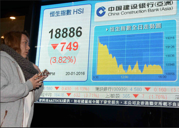 【香港商報網訊】記者伍敏報道:昨天是中國傳統的「大寒」節氣,當天香港市場也是寒徹入股。環球金融市場風雨飄搖之際,港元走資潮越演越烈,港匯昨創2007年以來低位,拖累港股釀小型股災。恒指昨重挫749點,收報18886點,創三年半收市低位。港府再度強調,本港金融市場仍有序運行,港匯一旦跌至7.85水平便會入市干預。