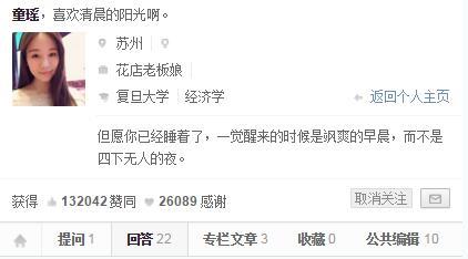 這位顏值高、學歷好、正能量爆棚的知乎大V,之所以能虜獲這么多粉絲,全靠煲各式各樣“心靈雞湯”,讓這個號稱精英出沒的問答平臺喪失了免疫力。