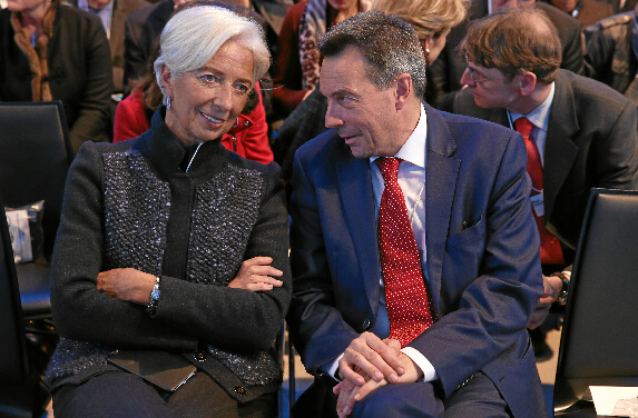 (国际)(3)世界经济论坛2016年年会在瑞士达沃斯开幕1月20日,在瑞士达沃斯,国际货币基金组织总裁拉加德(左)与红十字国际委员会主席莫雷尔在2016年年会上交谈。