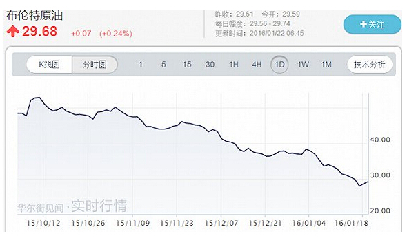 過去18個月,國際油價由每桶過百美元跌至27美元左右。上周六國際原子能機構宣布,伊朗已完全執行核協議框架內容,意味著石油輸出國組織(OPEC)第五大產油國重返國際油市在即。本周三,國際油價跌逾3%,13年來首次跌破每桶28美元關口。
