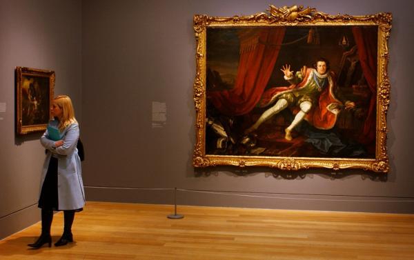 一位参观者流连于泰特不列颠美术馆所陈列的霍加斯作品前,这幅作品由利物浦的沃克艺术馆收藏。图:Stephen Kelly/PA