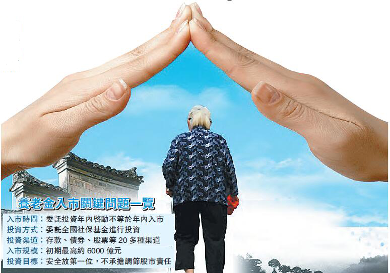 养老金投资运营正在按照计划推进,已经取得了阶段性进展。下一步将抓紧修改完善相关配套政策,徵求各地意见后正式实施,确保今年启动投资运营的目标如期实现。相关配套政策出台后,各省区市就可以陆续启动委托投资程式,进展快的年内就可以启动。不过李忠称,养老金投资并不等同於「入市」,委托投资开始的时间与「入市」的时间也不能划等号。投资办法规定了养老保险基金投资可以有银行存款、债券、股票、基金、养老金产品、重大工程、重大项目、企业改制上市等20多种产品和渠道,投资股市只是其中一类选择。同时养老保险基金投资股市主要是委托市场机构进行操作,由其根据市场情况自行确定股票交易时点,政府并不直接操作。据内地媒体证券日报此前报道,据测算最高将有6000亿元的养老金入市。海通证券预计,2016年新增保险社保和养老金入市资金约为6300亿。