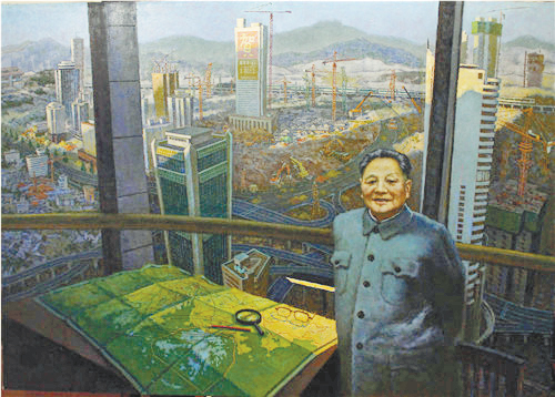 深圳羅湖區位於梧桐山下,東湖之濱,城區面積一半是風景秀美的梧桐山和東湖水庫,另一半是繁華的商業旺市不夜城;羅湖亦毗鄰香港,最先沐浴改革開放的春風,是一片充滿盎然生機和現代都市景致的改革開放「前沿陣地」;羅湖「一半山水一半城」的人文環境更是對畫家有著巨大感召力和吸引力。山明水秀,人傑地靈,孕育了羅湖「春天的故事」。這里有連接港深的羅湖橋,有曾創下「三天一層樓」的深圳速度;國貿大廈、漁民村、仙湖植物園都曾留下偉人的足跡,羅湖人是唱著「春天的故事」「走進新時代」。