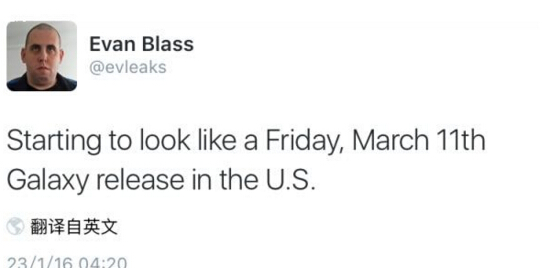 據外媒報道,日前爆料大神“@Evan Blass”在Twitter上公布了三星Galaxy S7和S7 Edge的發售時間為3月11日,發布地點是美國。看起來三星會在下個月的世界移動通信大會(MWC)期間發布這兩款新設備。新一代旗艦除了配置上的一些升級之外,我們或許看不到它會帶來其他的驚喜。