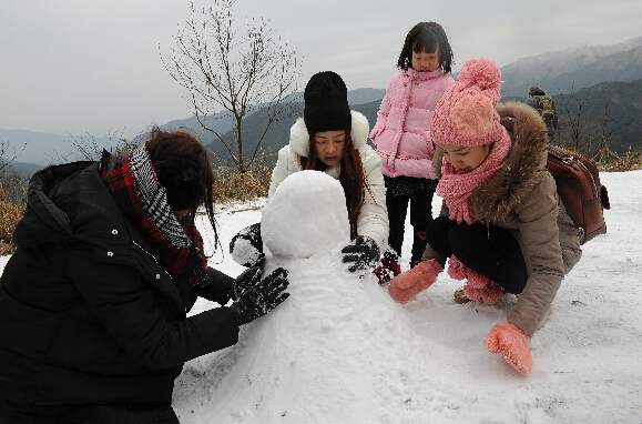 广东金子山迎来了近万名赏雪游客 。 中新社