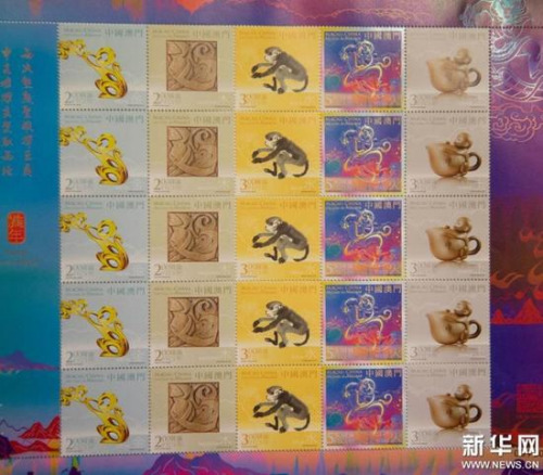 香港、澳门也都有猴年邮票推出。香港猴年贺岁生肖邮票展示多款以猴子为题的传统工艺品,以各种吉祥植物图案作为背景,象征吉祥如意。