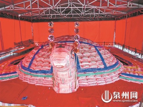 民俗活动中也有这一元素的体现。24日,泉州、台湾澎湖两地妈祖宫、天后宫联合制成了猴年“大米龟”。据悉,猴年“泉澎祈龟民俗文化活动”将于元宵期间举行,传承和弘扬“乞龟”的传统民俗。猴年“大米龟”高1米多、宽4米多、长超过6米。重达2.4万公斤的“大米龟”全部由成袋“平安米”堆砌而成,呈现出“巨龟”形象,有一定设计感。