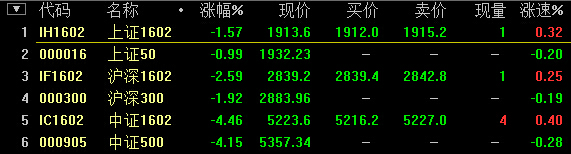13:31,滬指跌幅收窄至2.6%,3只期指主力合約仍保持貼水,其中IH1602貼水幅度最大,沖擊上證50權重股。