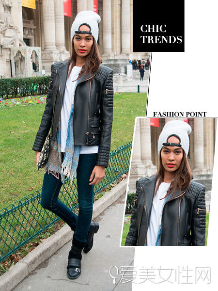 必选第一款——针织帽 针织帽是许多女生冬季都会使用的单品,因为它不仅保暖,还可以显嫩嘛!搭上皮衣可一点都不强势了哟,而且脑袋上有一个小小的毛球,真的非常卡哇伊!注意哦,针织帽适合长脸型或是瓜子脸的朋友佩戴,而方脸型或是圆脸的朋友可以选择下面说到的宽檐帽或是礼帽。