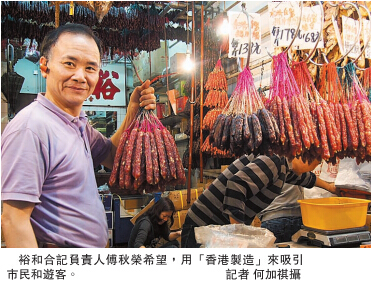 此外,主要售卖腊味的西营盘裕和合记负责人傅秋荣坦言本港经济今年稍微转差,市民购买腊味的数量有轻微下跌。他表示,今年腊味价钱与去年相若,尽管今年成本有上升一成,但价钱依然不变,预计生意额与去年亦相若。