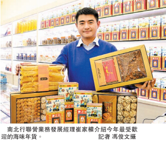 南北行联营业务发展经理崔家权表示,因日本供应量有下降,故今年花胶、元贝的价钱有上升;而乾鲍及海参的价格则有下跌。而礼盒货品的销量亦有两成上升,今年人均消费为500至1000元。他指,虽看到今年港人消费力有下跌,但亦对销情感乐观,故预计今年过年生意额与去年相若,希望有5%至10%上升。至於成本方面,他说,2015年经营成本有增加,当中部分租金更增加一至两成,而人手、运输成本亦有上升,对比2014年生意额尚算平稳。