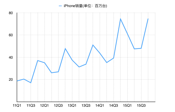 蘋果經常在9月季度發布新iPhone,並在12月季度實現最大銷量,之後幾個季度往往會下降。而等到新iPhone發布時,銷量又會再次增加。