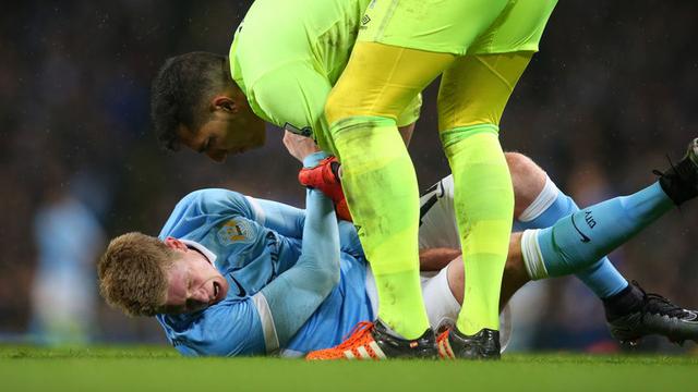 腾讯体育1月28日讯 在周中曼城(数据) 淘汰埃弗顿的联赛杯半决赛中,进球功臣德布劳内在比赛最后时刻受伤倒地,表情痛苦,令人担心他会因此长期缺阵。不过,当地时间周四上午,他的经纪人宣布,德布劳内的伤势并不重,有望在数周内复出。 在那场比赛传射建功的德布劳内在比赛最后时刻受伤,捂着膝盖痛苦倒地后被担架抬出球场。赛后,曼城主帅佩莱格里尼很担心:“现在还很难知道,他正和医生在一起,可能需要做韧带检查。明天我们会有更多的消息,但这不是个好的伤。他对我们很重要。” 在当地时间周四上午,德布劳内就进行了扫描,好消息也很快传来。丁丁的经纪人帕特里克-科斯特对天空体育说,他会在“数周内”复出。这显然对于正处在多线争冠的曼城来说是个好消息。而埃弗顿门将罗伯斯也对当时自己强行要拉丁丁起来道歉,他在推特上写道:“我要向德布劳内说对不起,我当时没有意识到他受伤的严重性,我祝他尽早康复。”
