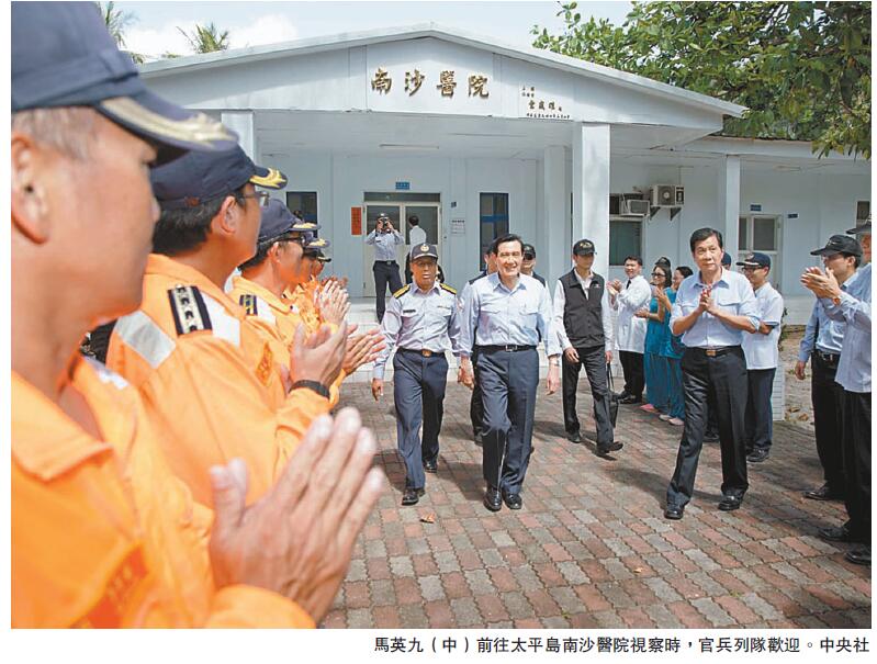 马英九昨日上午6时率相关部会官员及学者前往太平岛,先到空军松山基地指挥部搭空军1号飞往屏东空军基地,上午7时再搭C-130飞往太平岛,下午1时返台,并於下午6时举行国际记者会。
