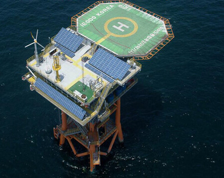 韩国在苏岩礁非法建设的3600吨重的大型海洋平台