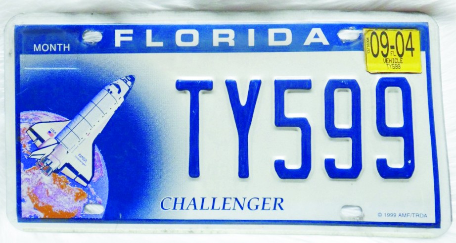 美各州也发放一些为公益组织筹款的个性车牌。如新罕布什尔发放的车牌左上角印着一只麋鹿,以此为该州的动物保护组织筹集资金,保护数量日益减少的大角麋鹿。而佛罗里达为纪念“挑战者”号航天飞机发射而发放的特殊车牌(如图①),筹款达3000万美元。有些车牌还会以独特的限量形式发售。如犹他州在争取到盐湖城冬奥会的举办权后,发行了2002年冬奥会限量版车牌,成为车牌收藏者的“紧俏货”和“抢手货”。