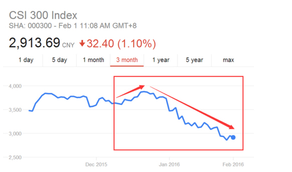 令做空者沒有想到的是,滬深300指數從去年年末的高點到一月底,暴跌逾26%。