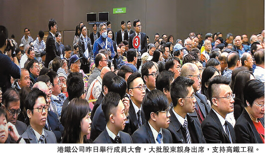 在多位股東「接力」質疑借錢派息方案同時,有不少股東支持方案。有一位股東認為借錢派息無問題,「錢落入股東袋中」後,股東如果擔心之後股價表現,可以選擇放售。另有股東亦認同香港經濟健康發展,高鐵工程應該建下去。