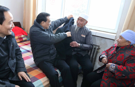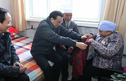 李克强过小年走访敬老院,给回族老人送新衣