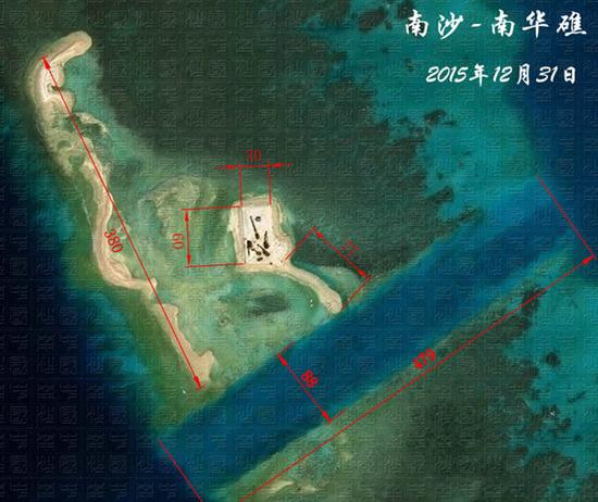 越南非法在中國島礁施工,圖為西南角施工地點。