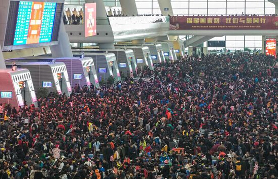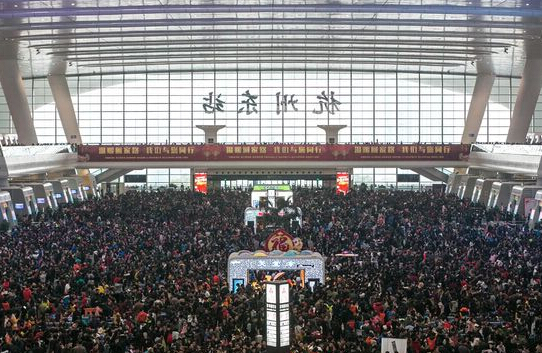 2016年2月1日,杭州火車東站候車大廳密密麻麻擠滿了人。