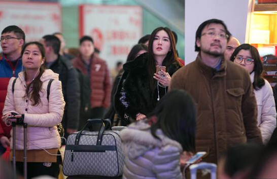 2016年2月1日下午起,上海虹橋火車站多趟列車晚點,大量旅客滯留在站廳內。