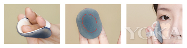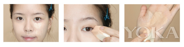 2.抹匀后要轻轻拍打面部,眼角、鼻翼两侧等部位可以用海绵的尖角部分进行涂抹;