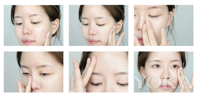 4.如果鼻翼两侧没有过多的瑕疵,只要使用正常的用量即可;如果毛孔比较粗大或者黑头比较多的,可以在抹完一层的基础上再反方向地边轻拍边抹匀;