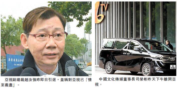 亚视日前已宣布星期一起停播晨早及午间新闻,近日已陆续有员工离职,其中制作部副总裁赵汝强昨日中午离开时,宣布「光荣引退」。他称,自己对亚视已「情至义尽」,感到无能为力。