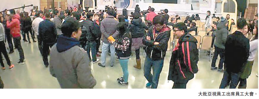 【香港商报网讯】记者周伟立报道:亚洲电视欠薪风波尚未解决!管理层昨日召开员工大会交代最新情况,新买家中国文化传媒董事长司荣彬昨早虽有到访亚视,但并无出席大会。股东代表何子慧透露,现时公司主要靠2间上市公司出资,由於需时30天发股份集资,期望员工给予时间耐心等候;又怪责亚视新闻部「自己报道自己」欠薪新闻。有关言论引起员工鼓噪,有人扬言会「停播罢做」 运总裁马熙下午则大派定心丸,指希望周五可以发放12月及1月薪金,又形容机会很大。