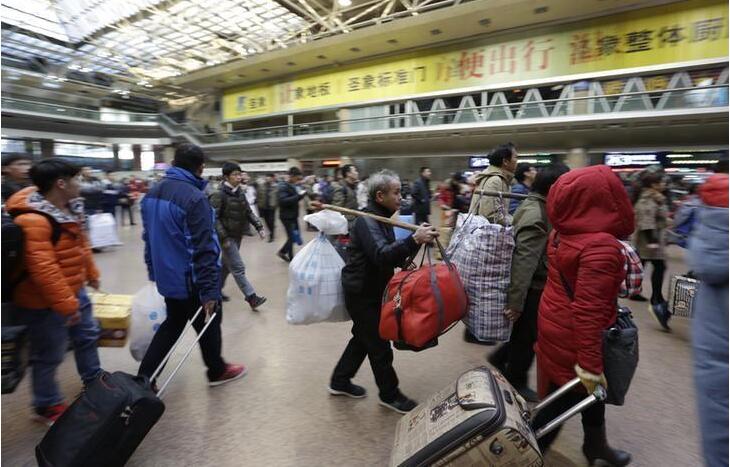 2月1日,北京西站,旅客带着行李进入候车大厅。 REUTERS/Jason Lee