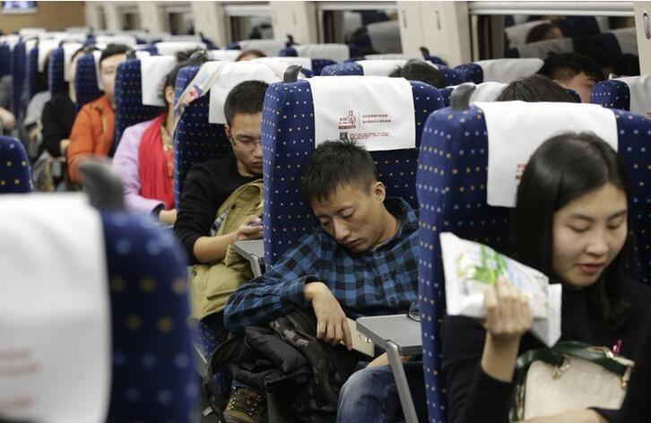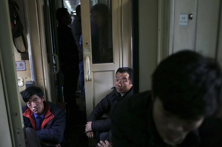 2月1日,北京西站,旅客坐在火车里。 REUTERS/Jason Lee