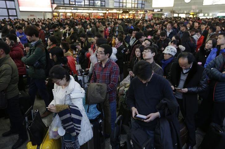 1月27日,旅客乘坐上海至石家庄的火车。 REUTERS/Aly Song