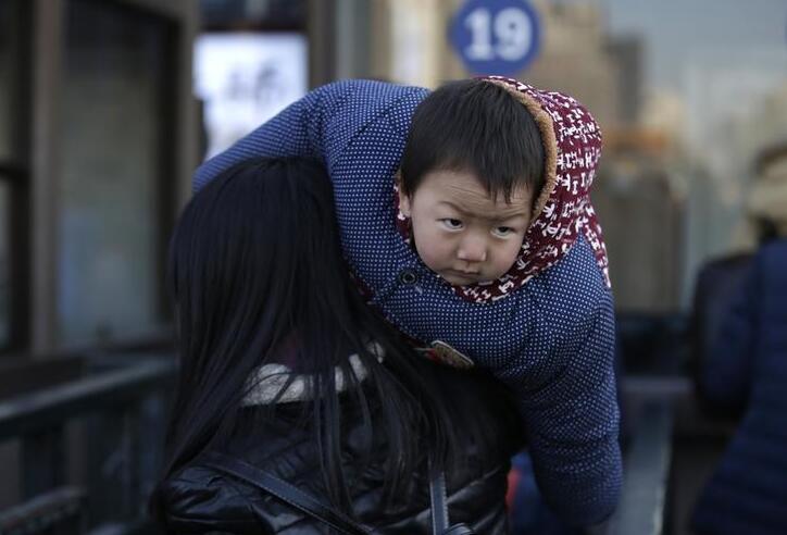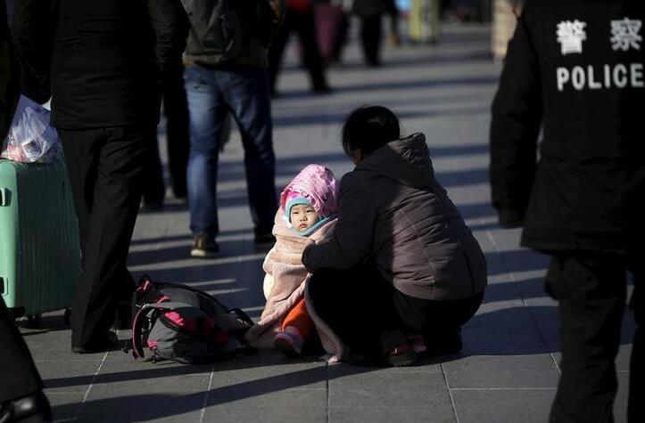 1月25日,北京站,一位妈妈抱着孩子准备乘坐至家乡河南新乡的火车。 REUTERS/Jason Lee