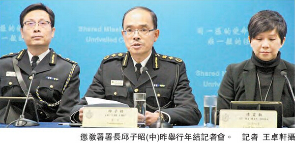 【香港商报网讯】记者王卓轩报道:随着整体罪案率下降,在囚人口亦有所下降。惩教署署长邱子昭昨日在年结记者会上表示,去年惩教院所每日平均在囚人口为8413人,较2014年的8797人微跌4%。虽然在囚人口下跌,但去年惩教署新收纳的高保安风险在囚人士及非华裔人士数字却大幅上升。另外,由於人口老化,65岁以上在囚人士亦较10年前上升1倍,医疗押解数字持续高企。惩教署将设立一支35人的区域应变队,负责高风险押解工作。