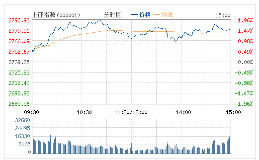 周四兩市小幅高開,早盤股指震蕩走高漲近2%,2800點壓力較大,臨近午盤兩市小幅回落。午後大盤高位震蕩。截至收盤,滬指漲1.52%報2781.02點,深成指漲1.60%報9793.07點。