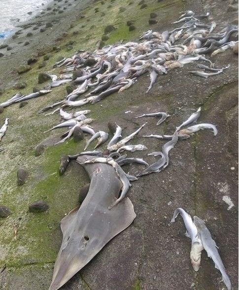 有台湾民众2月3日早上去钓鱼,约10点时发现新竹旧港桥下堤防有大批鱼尸,近看发现全是已死亡的幼鲨,遭割断鱼鳍、鱼尾后弃置于此,已发出恶臭。民众将照片PO上网,有网友便转至脸书社团《爆料公社》,谴责为吃鱼翅而害死这些小生命的行为。