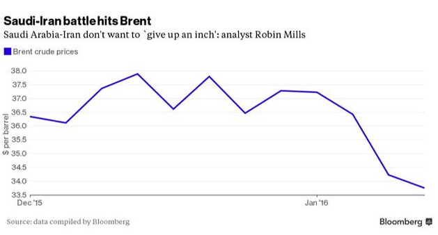 國際油價前年和去年分別跌約50%和35%。今年1月,受中國經濟增速不佳和伊朗重返國際市場前景影響,布油美油雙雙跌破30美元歷史性關口,今年以來跌幅已達到6%左右。據彭博統計,上月伊朗日產油286萬桶,Mills預計,今年伊朗可能每日向市場新增供應60-80萬桶。