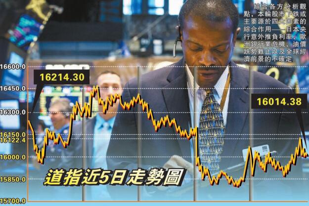 【香港商報網讯】全球股市最近幾日的震盪較為劇烈,歐美股市下挫,日本股市也大跌。綜合各方分析觀點,除跌勢難止的油價和全球經濟前景的不確定性增強外,日本央行意外推負利率以及歐洲銀行業危機成為引發市場擔憂情緒的兩個最新爆點。聯儲局主席耶倫本港時間10日晚11時將在美國國會就貨幣政策發表講話,投資者或可通過耶倫的言論進一步判斷市場未來走勢。