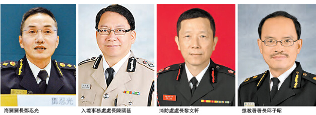 昨午,海關關長鄧忍光、入境事務處處長陳國基、消防處處長黎文軒、懲教署署長邱子昭及政府飛行服務隊署理總監馬信康發表聯合聲明。聲明全文如下: