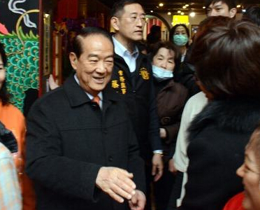 农历大年初九是玉皇上帝的诞辰,民俗有「拜天公」的仪式。宋楚瑜上午抵台南,与立法院长苏嘉全、台南市长赖清德等一起参加300多年历史的台南首庙天坛所举辨的中枢祭天祝寿大典,受到许多民众的热烈欢迎并争着要和宋握手、合影,也展现他在大选之后的基层人气。