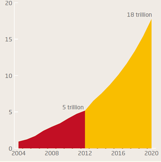 到2020年中企海外資產總額將達18萬億美元 來源:榮鼎咨詢2015年6月報告