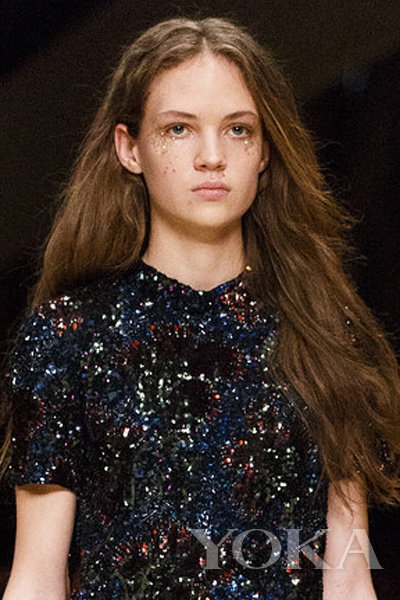 Burberry Fall 2016出现了它的身影,除了闪烁之外,亮粉主要分布在眼尾两侧,看起来倒是有种“美人鱼”的禁欲系美感。
